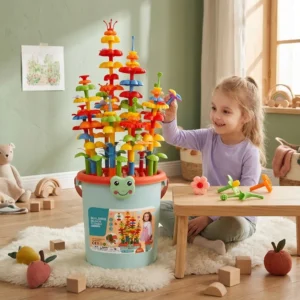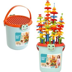 Vibrant Mushroom Building Block Set with Frog‑Face Storage Bucket