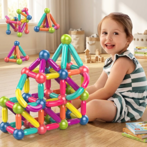 Magnetic Balls and Rods Set, Educational Magnet Building Sticks Blocks 3D Puzzle Toy for Kids Children,Stacking Toys Puzzle Magnetic Blocks, Creativity STEM Toys Gift for Kids Toddlers (64 Pcs)