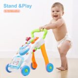 - 👶2 in 1 baby learning walking toys designed for baby 6 month up to sit and play, 9 months up for practicing standing and walking. It can help develop kids’ coordination and strength by pushing the walker forward in order to help them learn initial standing and walking