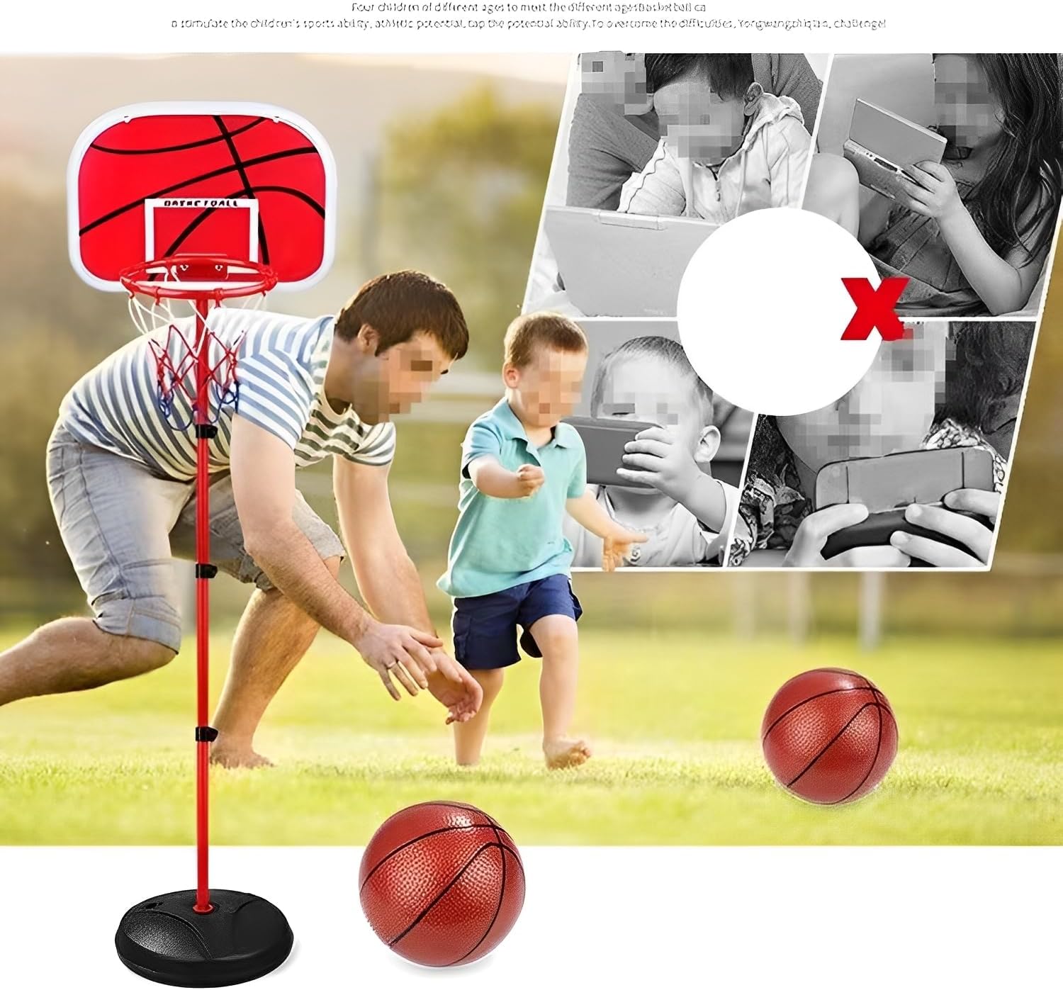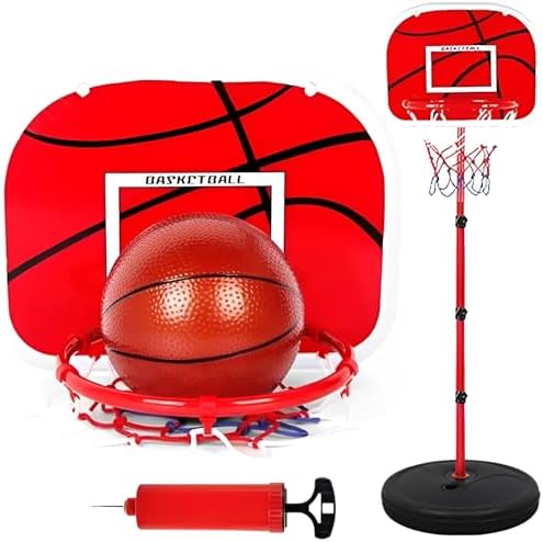 • 🎁 Complete Set with Ball & Pump – The package includes everything your child needs to get started: 1 basketball, 1 pump, and 1 adjustable stand. Simple to set up and ready for indoor or outdoor play.