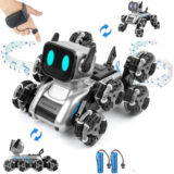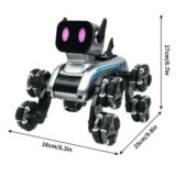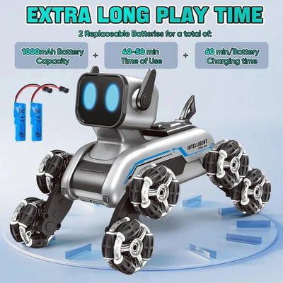 Powered by an 8-wheel drive system, this robot dog easily conquers carpets, tiles, grass, and outdoor terrain. With both remote control and gesture watch control, kids can enjoy two fun ways to command their robot pet — making every play session feel like a real adventure.